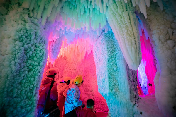 冰溶洞位于江西省铜鼓县三都镇东浒村红石崖下的古河床,鬼斧神工的天然造就加人工开发,溶洞面积达三千平米,洞内四季寒冰不化,景色瑰丽绝伦。冰花、冰笋、冰柱、冰幔、冰锥、冰瀑造型千奇百怪,晶莹剔透,极寒处达零下17℃,请做好防寒保护,以免冻伤,先在溶洞口看看路线图,从人工溶洞进入里面。在装备处领取头盔,必须带头盔哦,里面到处是冰柱子,要防止撞伤,头盔免费的,没带保暖衣服的可以租羽绒服,20元一件。在冰洞里可以慢慢看,慢慢拍照,可以往前拍往后拍,回头拍,如果洞内信号不好,拍抖音的需要先存好视频到冰洞外再发抖音。